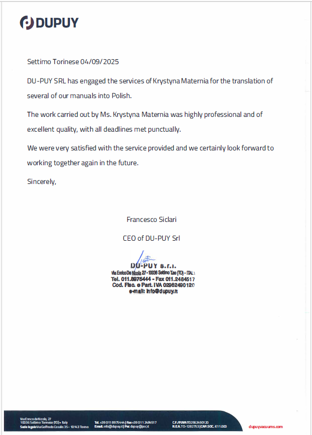 instrukcja oryginalna vs. tłumaczona (sprawdź referencje od Dupuy srl)